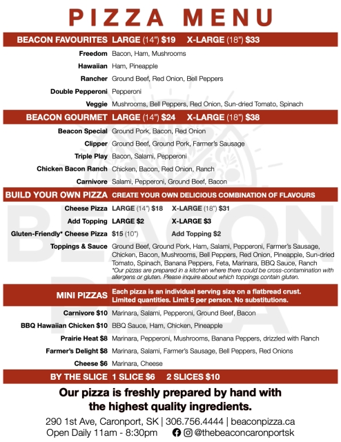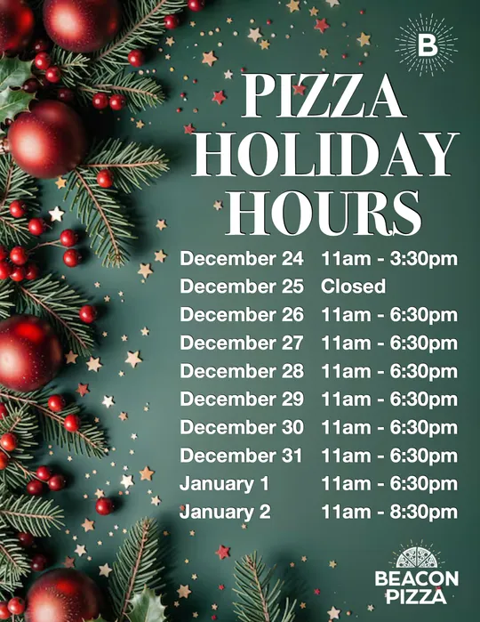 Beacon Pizza open daily 11:00am - 8:30pm.