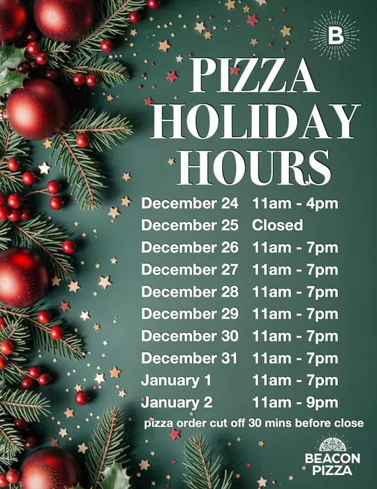 Beacon Pizza open daily 11:00am - 8:30pm.